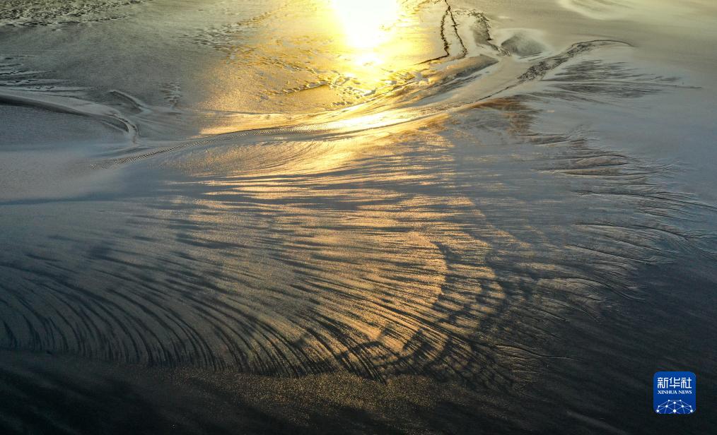 夕阳下盐城东台条子泥湿地景色(2023年9月1日摄,无人机照片)。