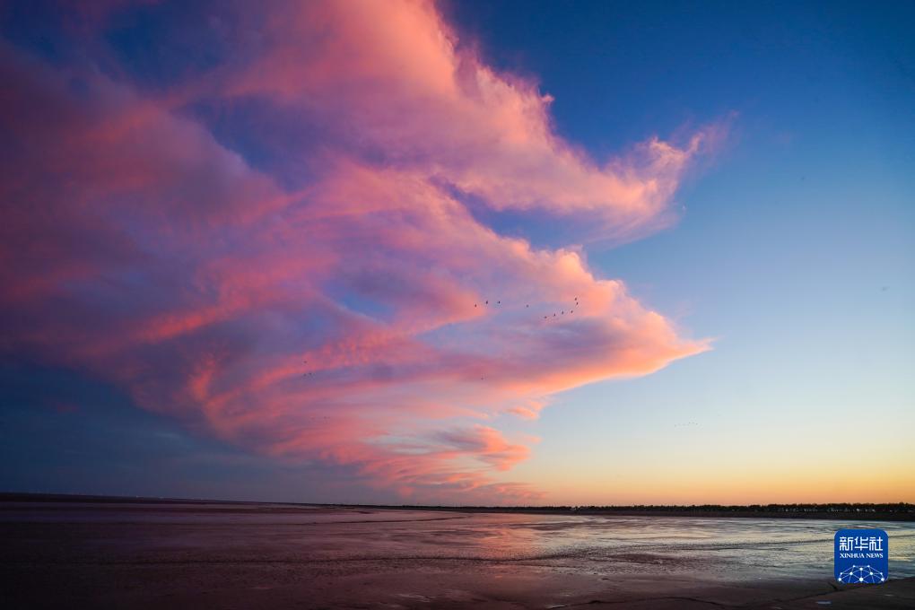 盐城东台条子泥湿地日落时分景色(2023年8月31日摄)。