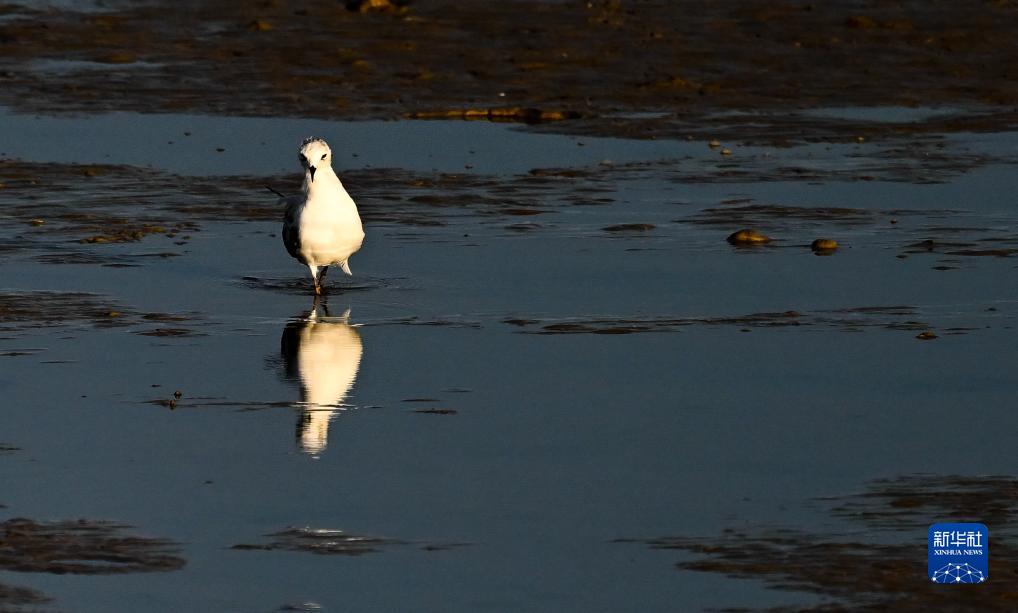 鸟儿栖息在盐城东台条子泥湿地滩涂(2023年8月31日摄)。