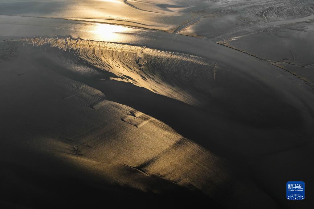 盐城东台条子泥湿地日出时分景色(2023年9月1日摄,无人机照片)。
