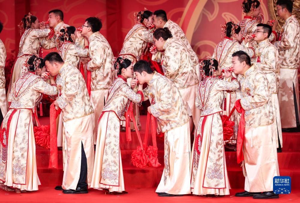当日,在成达万(成都经达州至万州)高速铁路四川省蓬安县燕山寨隧道口的施工工地,来自中铁三局五公司各建设工地的38对新人,身着中国传统婚礼服饰参加集体婚礼。