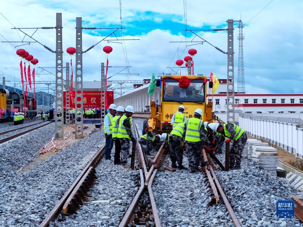 9月19日,在云南省迪庆藏族自治州香格里拉站施工现场,随着最后一对500米长钢轨精准落在道床上,滇藏铁路丽江至香格里拉段全线铺轨完成,为年内开通运营奠定坚实基础。丽香段开通运营后,迪庆藏族自治州将结束不通铁路的历史。