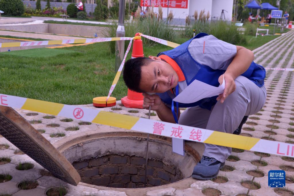 9月19日,在河北省建设行业职业技能竞赛决赛现场,选手在进行供水管网漏水探测及地理信息数据测量比赛。
