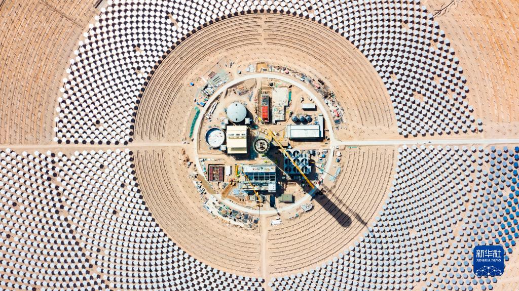 这是试点项目吸热塔及镜场区(9月19日摄,无人机照片)。