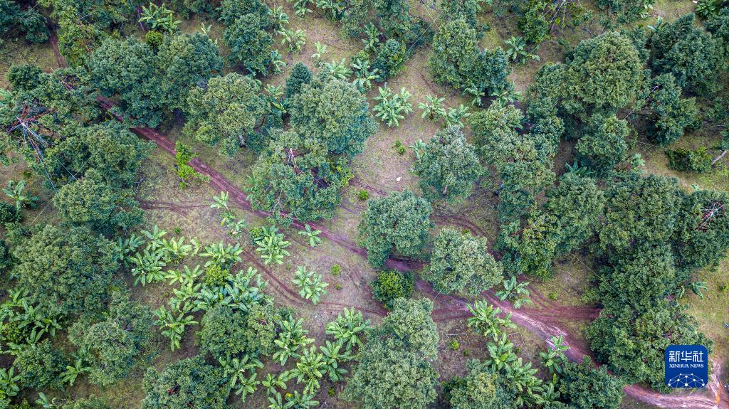 这是9月18日在泰国春蓬府拍摄的一处榴莲果园(无人机照片)。