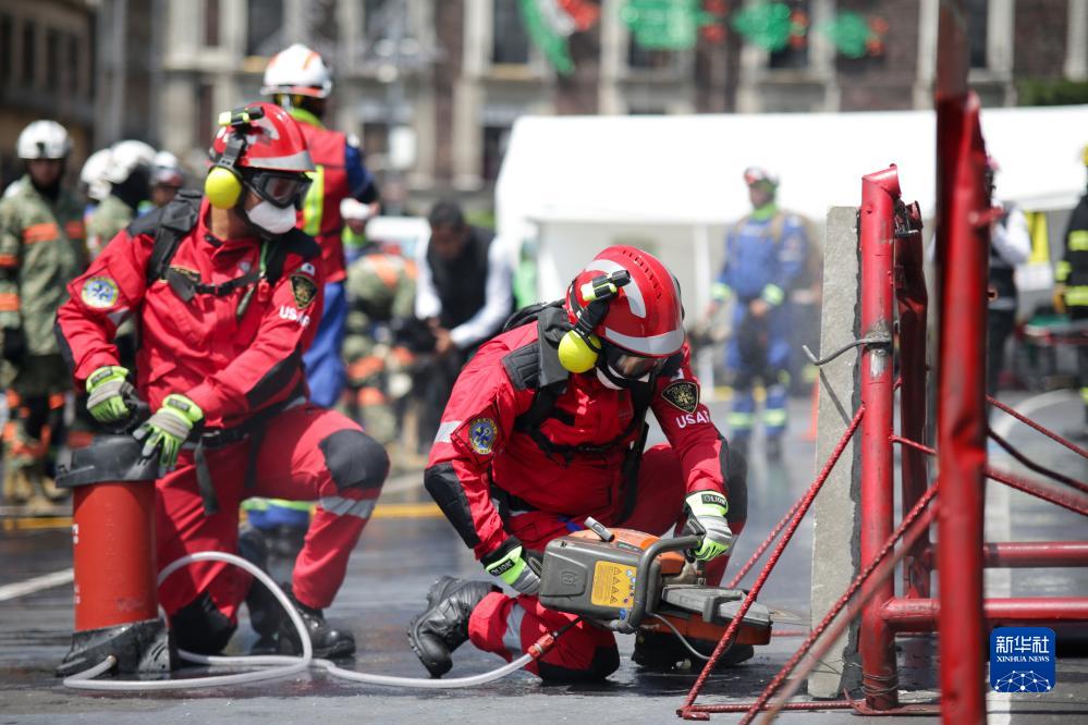 9月19日,救援人员在墨西哥首都墨西哥城参加地震演习。