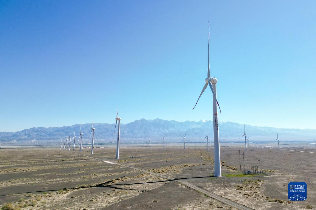 新疆达坂城风电场(8月4日摄,无人机照片)。