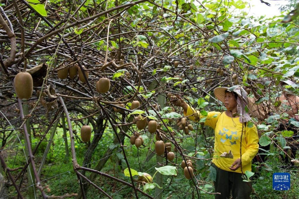 9月20日,湖南省永州市蓝山县所城镇舜源村猕猴桃种植基地,当地果农在采摘猕猴桃。