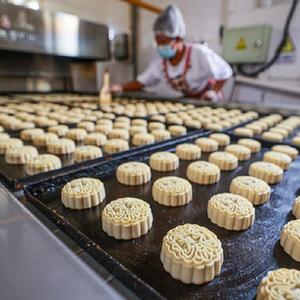 中秋节临近,各地月饼加工企业忙着生产月饼,供应节日市场。