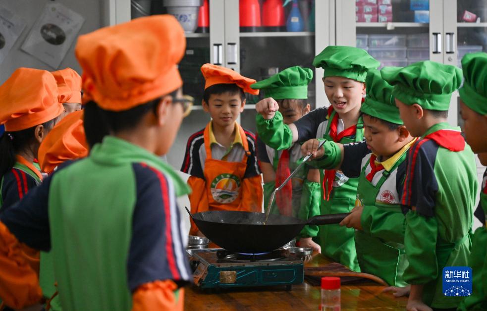 9月20日,重庆市忠县乌杨小学厨艺社团的学生在学习、体验炒菜。