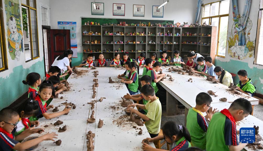 9月20日,重庆市忠县乌杨小学泥塑社团的学生在学习、体验泥塑。