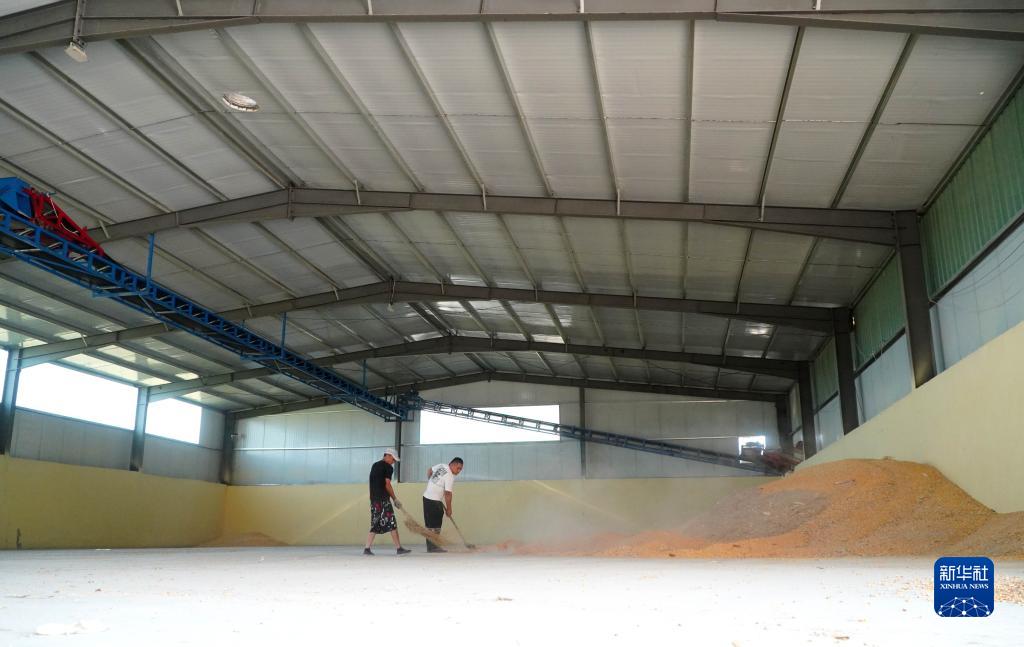 近日,山东省新泰市40余万亩秋粮进入成熟收获期,当地农户利用晴好的天气开展秋粮收割、晾晒、仓储等工作,确保秋粮颗粒入仓。