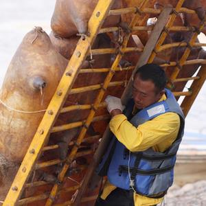 羊皮筏子承担着黄河两岸一代代人的劳动、生活、交通运输的使命,见证了黄河历史文化。作为筏子客,牛强认为他们仅仅是传承了老祖先留下来的手工艺。然而,制作保养羊皮筏子的高成本和繁琐流程让这门技艺越来越“孤独”。牛强介绍,从挑选五至六岁的公山羊开始,羊皮筏子的制作周期至少需要三个月。制作完成后,还要定期进行灌水灌油灌盐和吹气保养。这项被甘肃省列为非物质文化遗产的传承人已寥寥可数,43岁的牛强是最年轻的一位,年纪最大的已经90多岁。