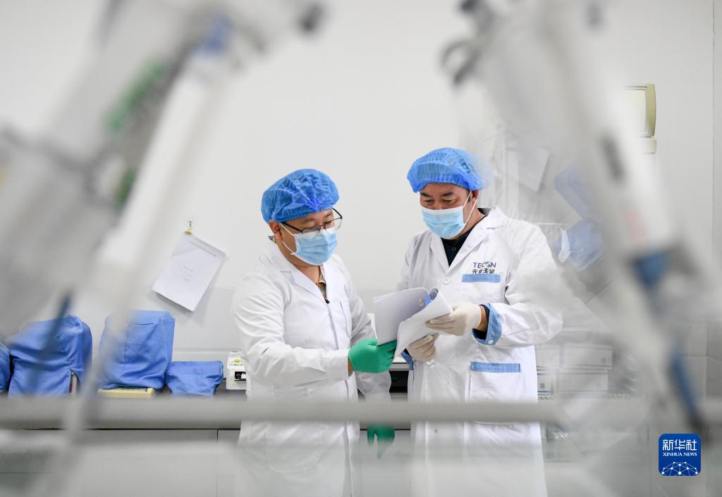 来自福建省宁德市蕉城区农业农村局的援疆干部张汉宁(左)与木垒县农业农村局动物疾病预防控制中心实验室主任艾分·沙比汗一起分析数据(9月21日摄)。