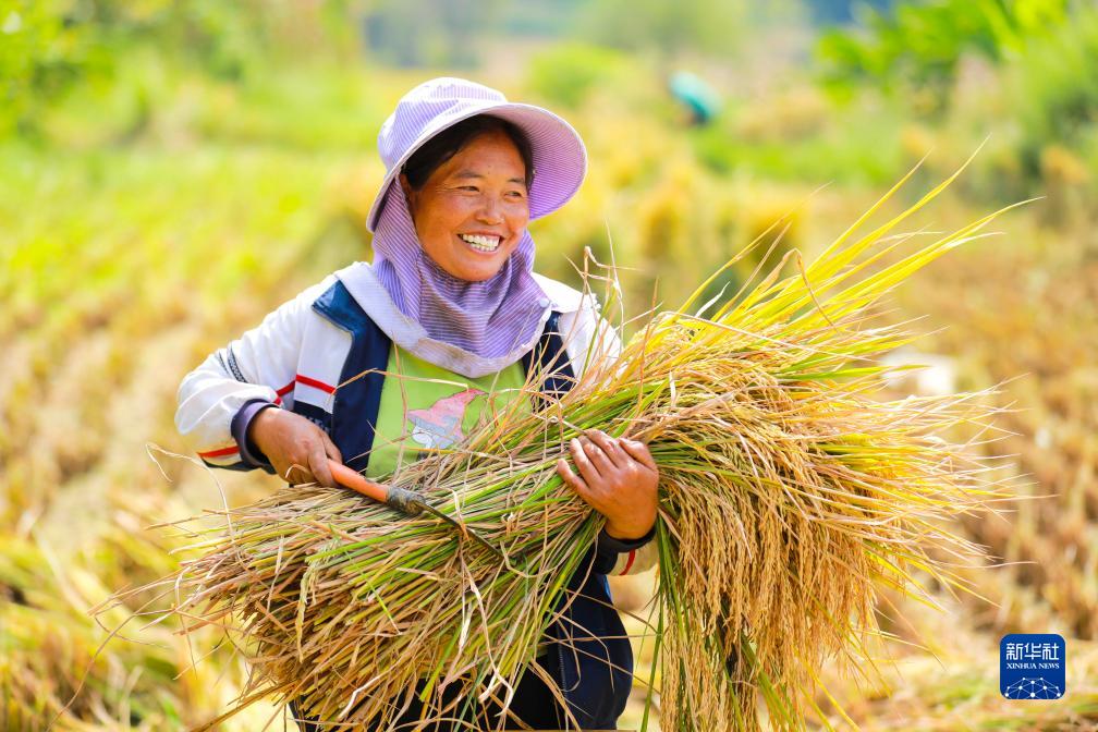 金秋时节,全国秋粮陆续进入收获季,各地农民在天气晴好时,抓紧收获、晾晒、入库稻谷、玉米等秋粮作物,力争粮食丰收。