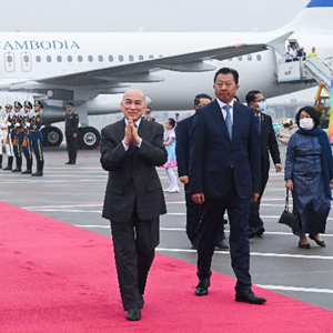 9月22日下午,来华出席杭州亚运会开幕式的柬埔寨国王西哈莫尼抵达浙江省杭州市。
