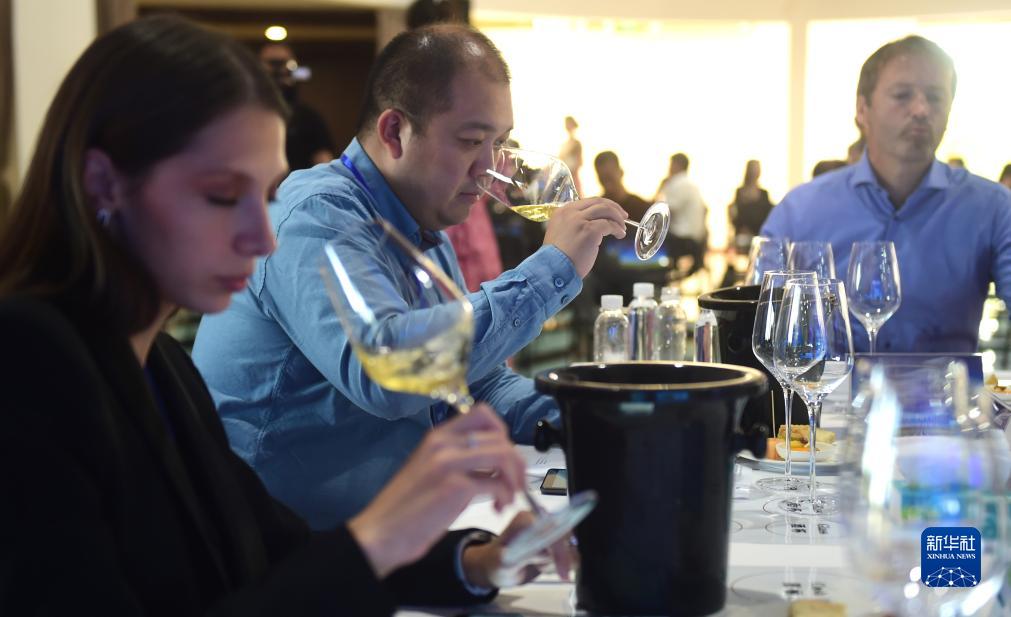 9月22日,中外品酒师在中国-中东欧葡萄酒大赛上品评葡萄酒。