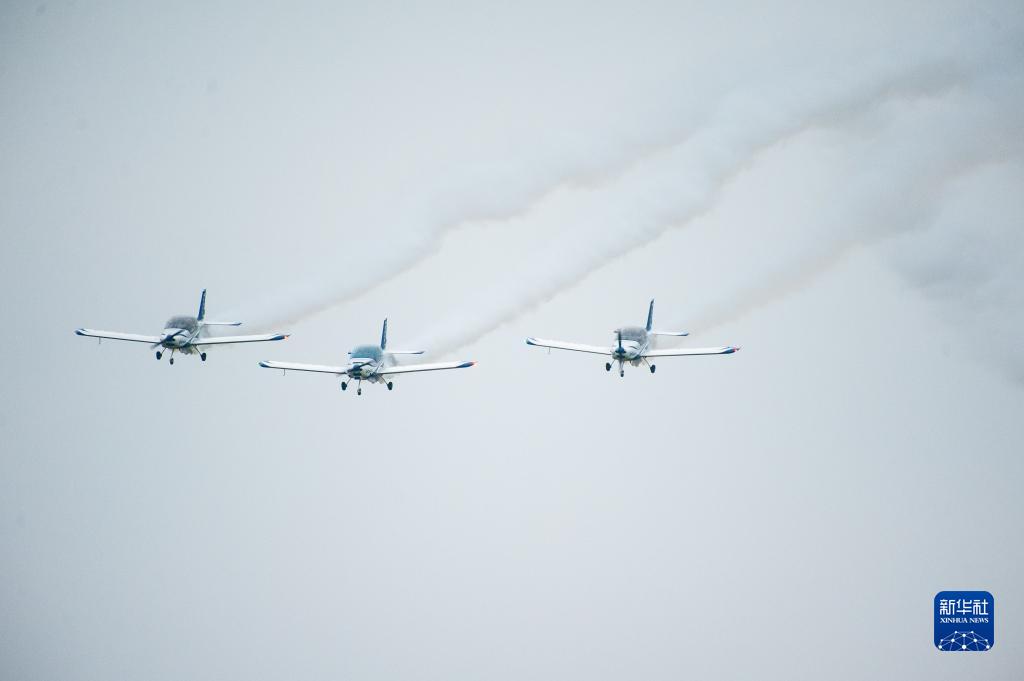 9月22日,在湖南株洲芦淞机场,飞行员进行固定翼编队飞行表演。