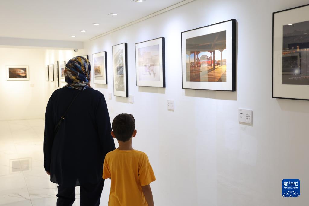 9月21日,在摩洛哥首都拉巴特,参观者在“你好,北京”文旅交流活动中参观摄影展。