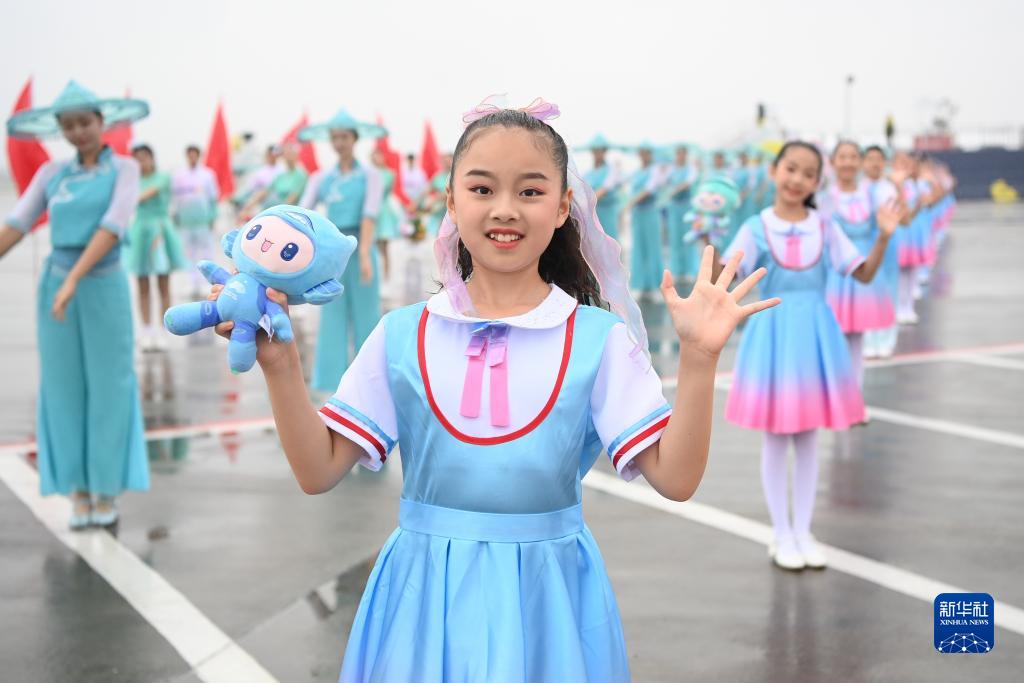9月23日上午,来华出席杭州亚运会开幕式的尼泊尔总理普拉昌达抵达浙江省杭州市。这是欢迎仪式现场。