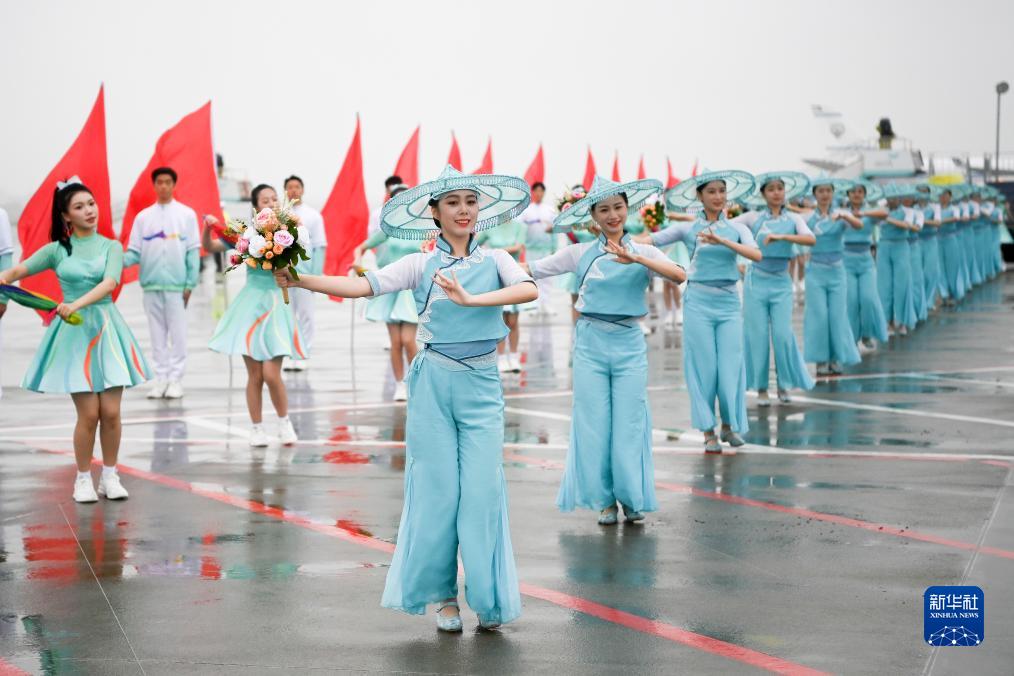 9月23日上午,来华出席杭州亚运会开幕式的尼泊尔总理普拉昌达抵达浙江省杭州市。这是欢迎仪式现场。