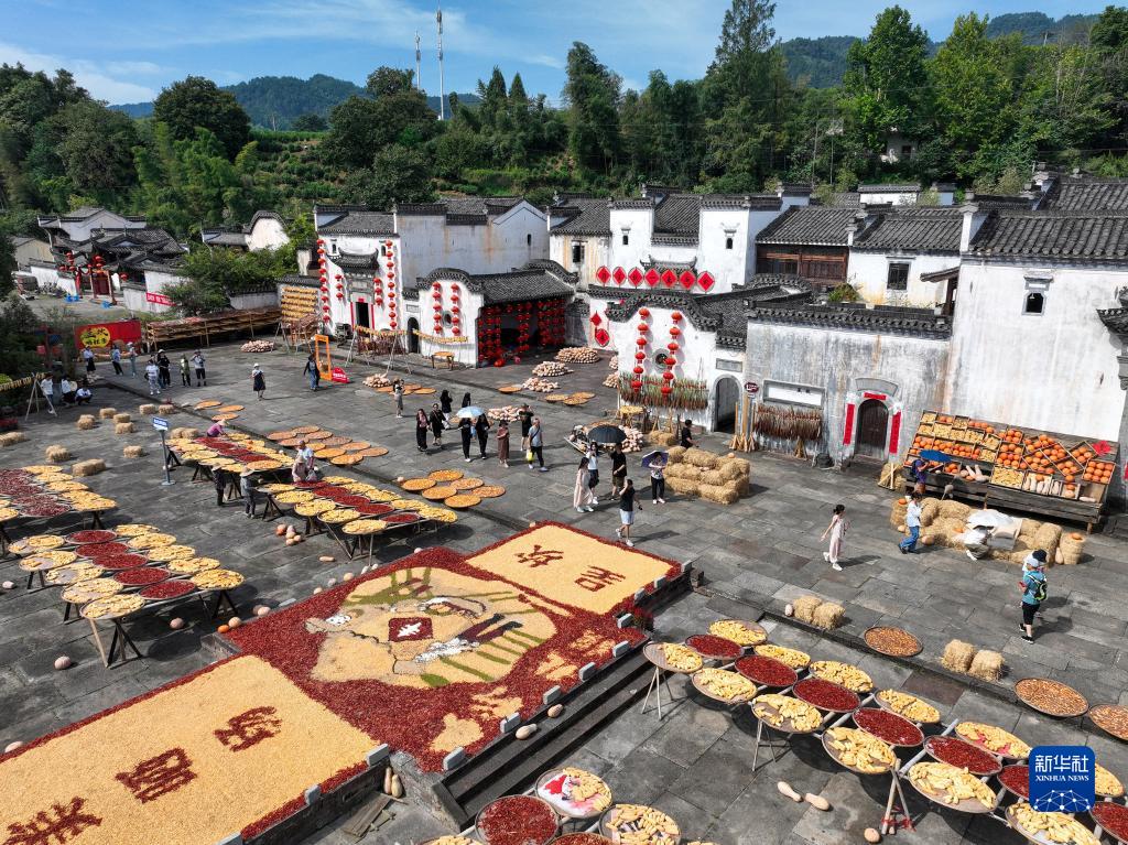金秋时节,在安徽省黄山市徽州区呈坎村及黄山市歙县深渡镇阳产村,“晒秋”成为秋天里一道靓丽的风景。“晒秋”是皖南地区的传统习俗,由于气候潮湿,当地村民利用晴好天气,将收获的农作物集中晾晒。五颜六色的农作物被拼成精美的图案,庆祝丰收的同时,也成为当地特色景观,吸引不少游客前来观赏。