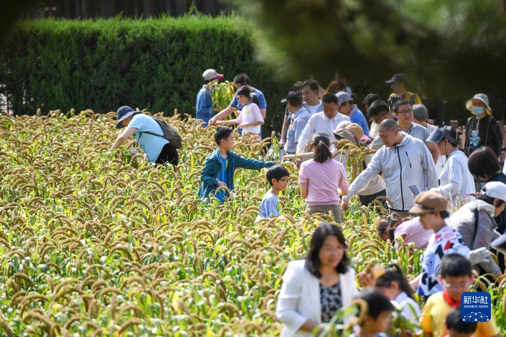 当日,“2023先农坛一亩三分地农耕体验季”秋收活动举行。在北京先农坛内的耤田里,活动参与者体验农作物收割,辨识五谷,感受中华传统农耕文化。