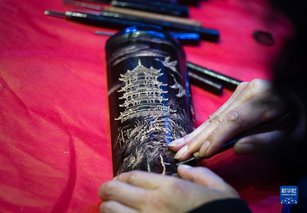 9月21日,选手徐海清在现场展示雕刻塑造(竹雕)技艺。