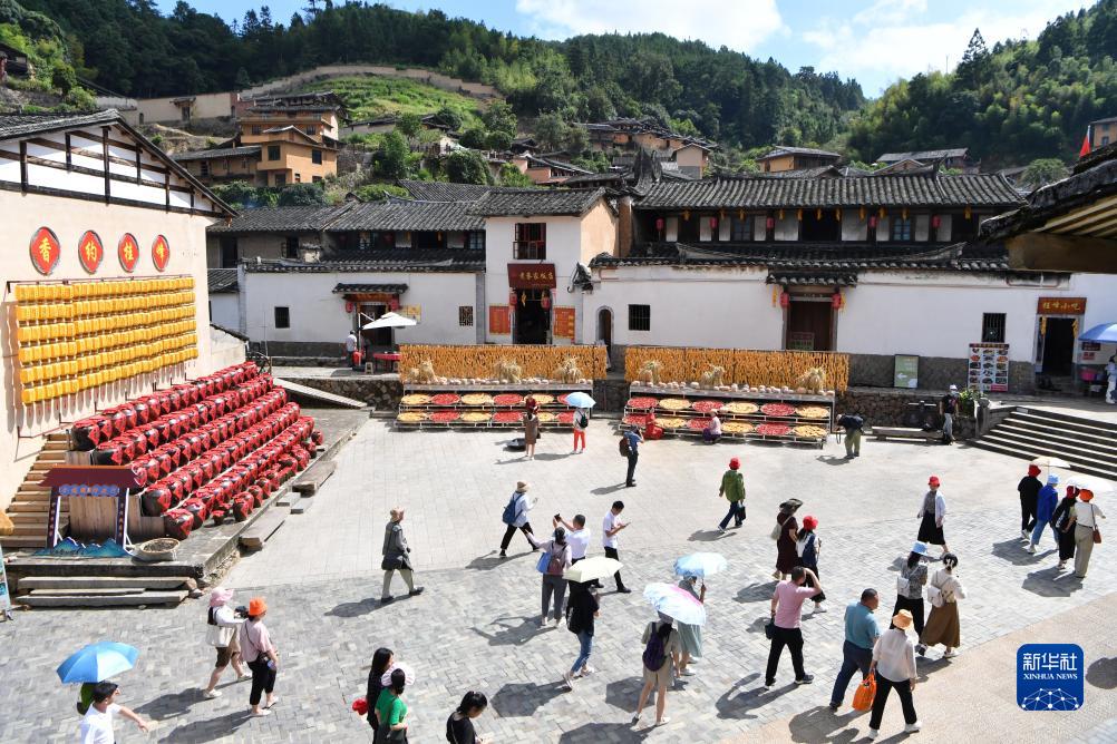 当日,中国历史文化名村福建省尤溪县桂峰村迎来一年一度的“晒秋”文化节,吸引游客前来游玩拍照。近年来,桂峰村依托深厚的历史文化底蕴和丰富的民风民俗资源,推动“文化+旅游”融合,开展桂峰晒秋节、蔡氏祭祖大典、“古村风情”摄影展等活动,让古村古厝焕发出新的生机与活力。