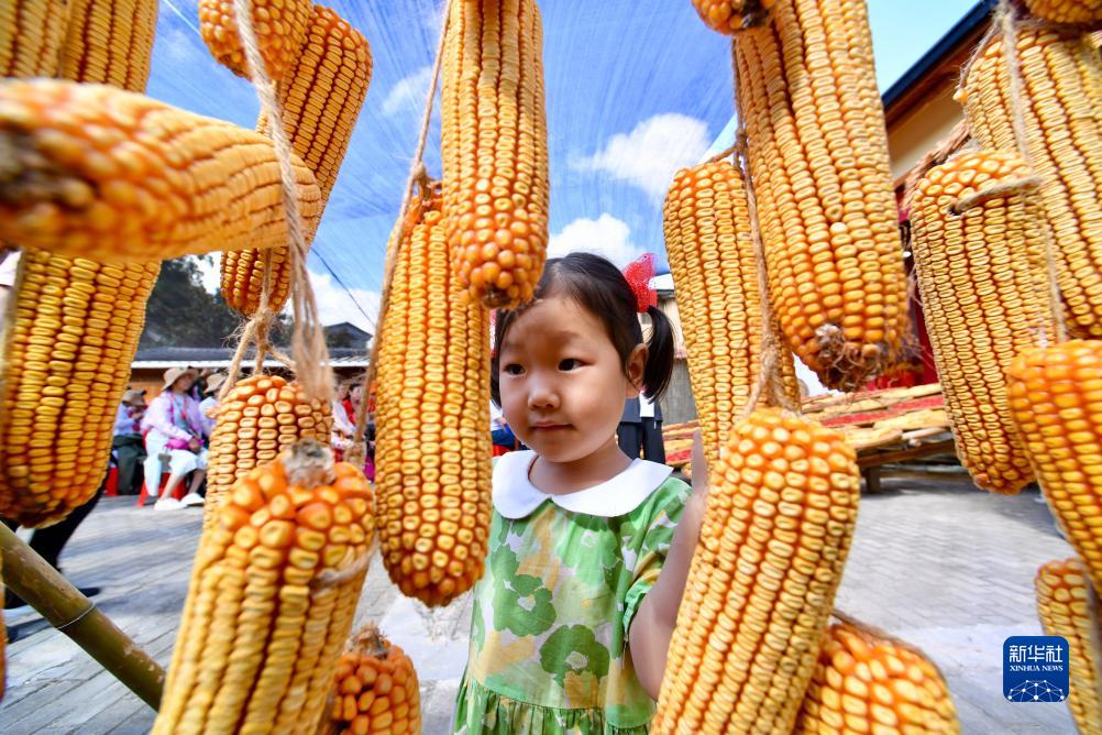9月23日,一名孩童在桂峰村“晒秋”节上玩耍。