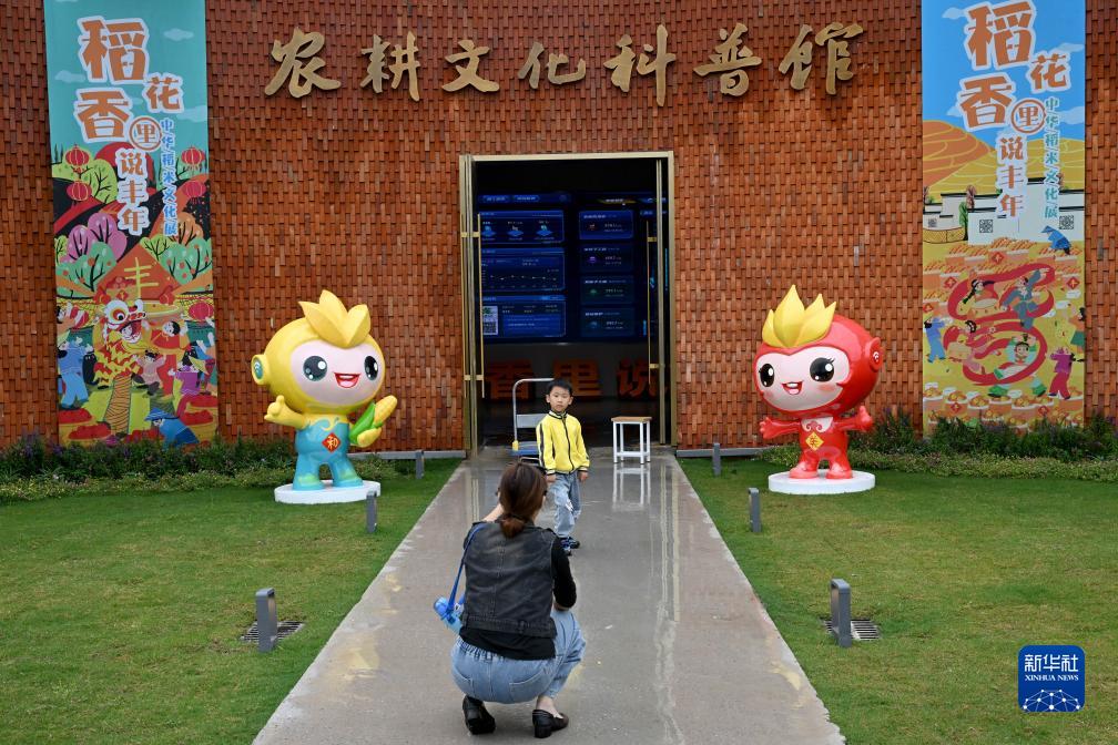 9月23日,参观者在农耕文化科普馆前拍照留念。