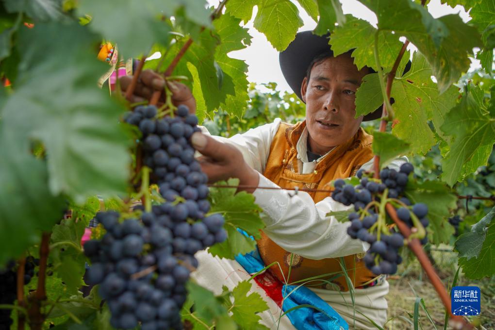 9月23日,村民在桑日县葡萄基地内采摘葡萄。