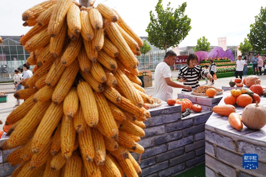 9月23日,在迁安市丰收节庆祝活动现场,市民在选购农产品。