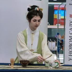 9月23日,在塞尔维亚诺维萨德举行的“汉服节”活动上,一名学生展示汉服。
