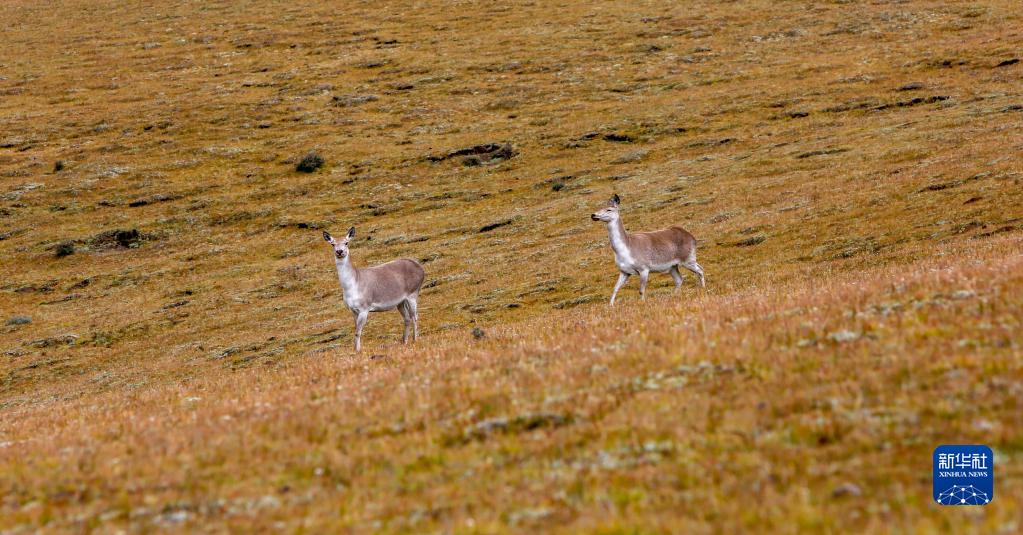 9月24日,几只西藏马鹿出现在位于西藏自治区山南市桑日县的贡德林草原上。