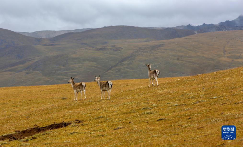 9月24日,几只西藏马鹿出现在位于西藏自治区山南市桑日县的贡德林草原上。