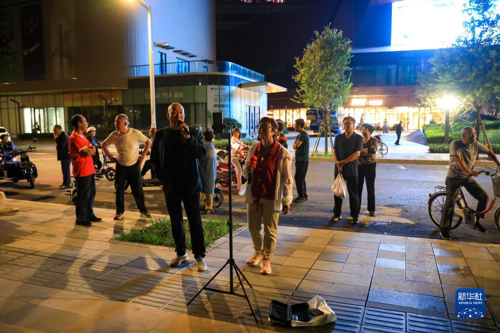 居民在雄安新区容东片区双文街附近休闲娱乐(9月19日摄)。