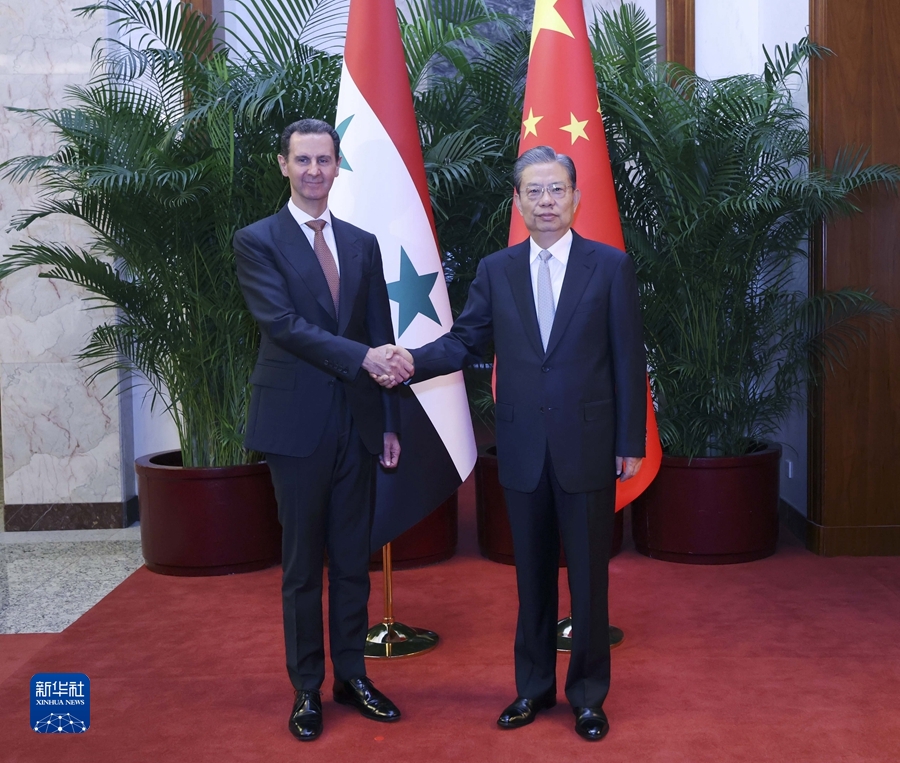 9月25日,全国人大常委会委员长赵乐际在北京会见叙利亚总统巴沙尔。