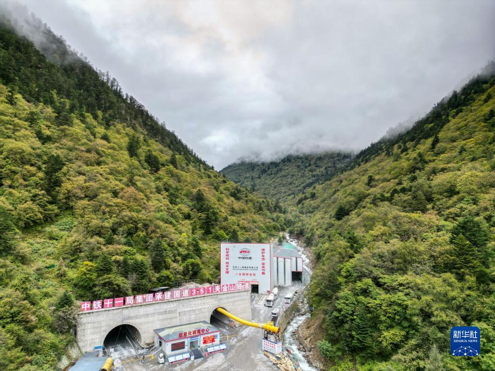 这是9月25日在四川省宝兴县拍摄的夹金山隧道口(无人机照片)。