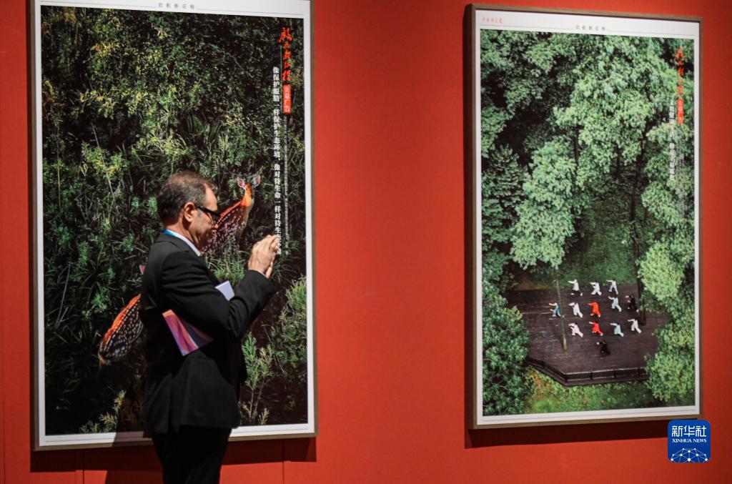 9月26日,在新疆美术馆,参观者在拍摄展出的摄影作品。