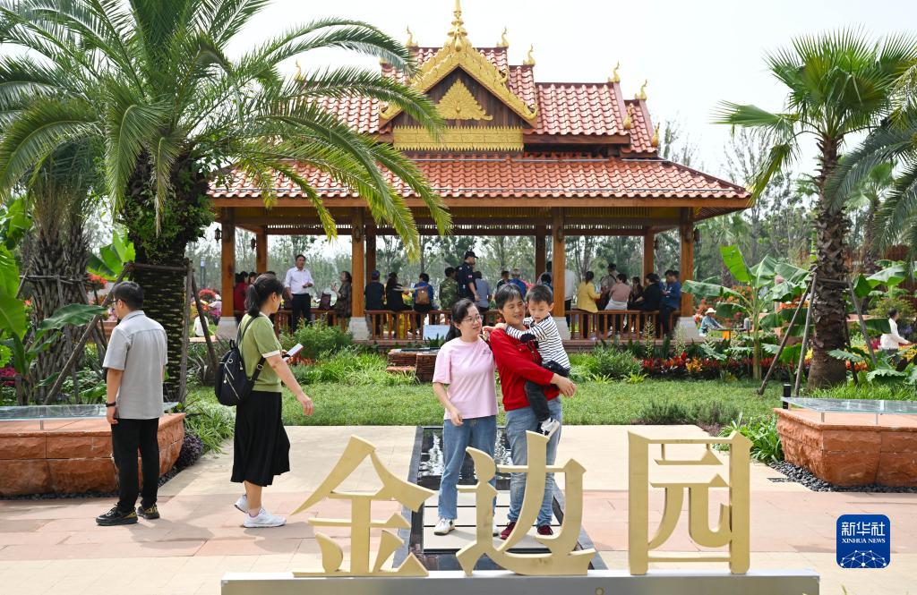 9月26日,观众在第十四届中国(合肥)国际园林博览会城市展园柬埔寨金边园参观。