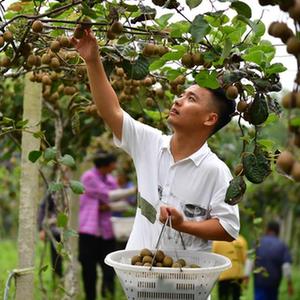 9月26日,段鹏飞在种植园里采摘猕猴桃。