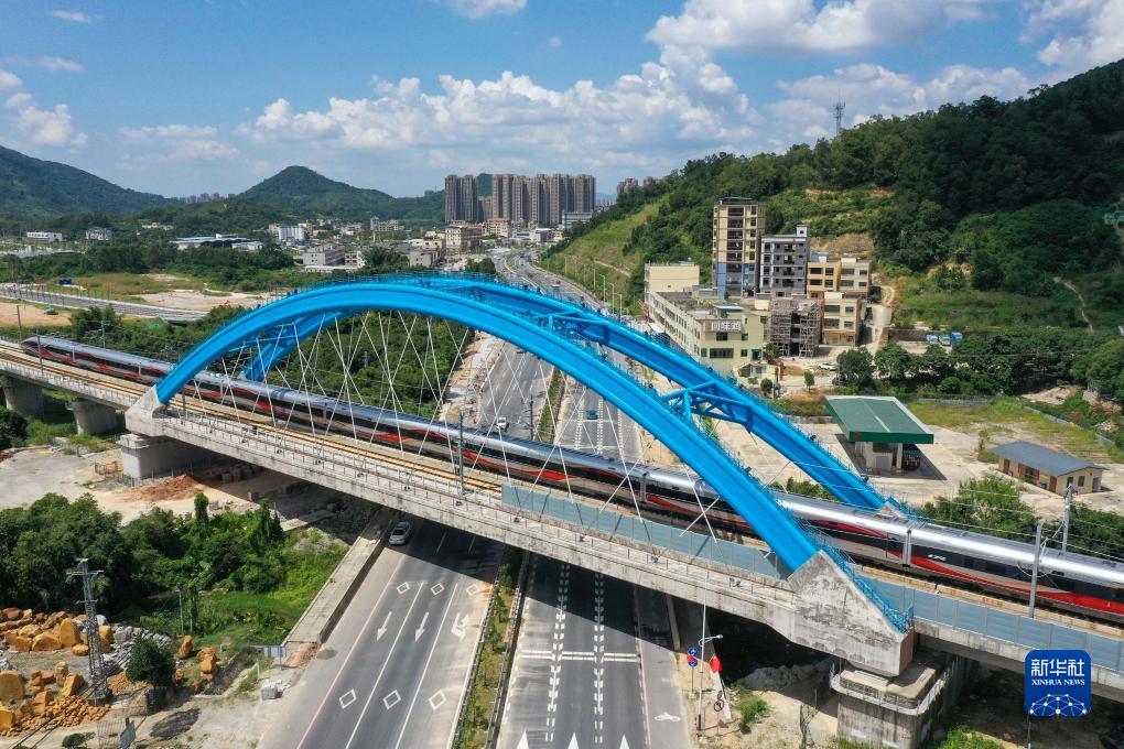 9月26日,列车经过中铁十一局承建的广汕高铁背子头特大桥。