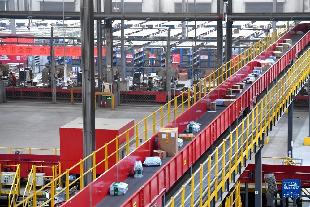 这是9月26日拍摄的河北省石家庄市京东物流园分拣中心。