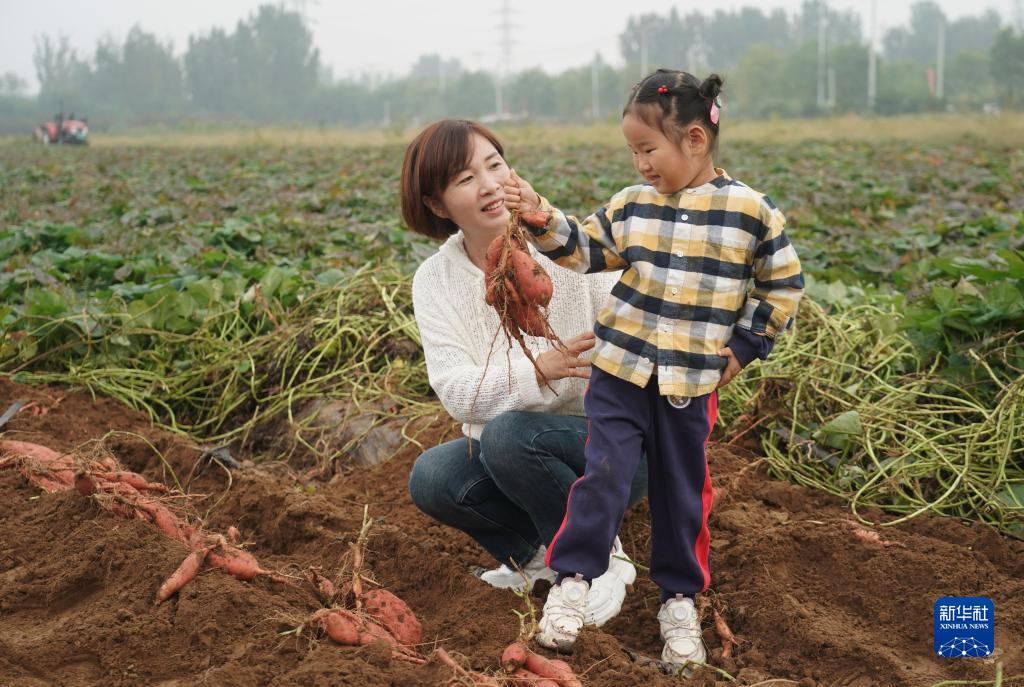 9月27日,游客在北京市平谷区夏各庄镇贤王庄村的一处红薯地参观。