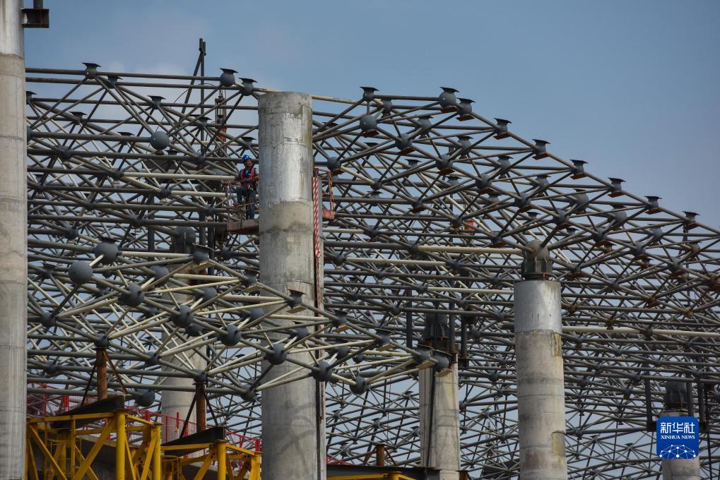 9月27日,建设者在广州白云国际机场T3航站楼东北指廊进行屋顶钢结构施工。