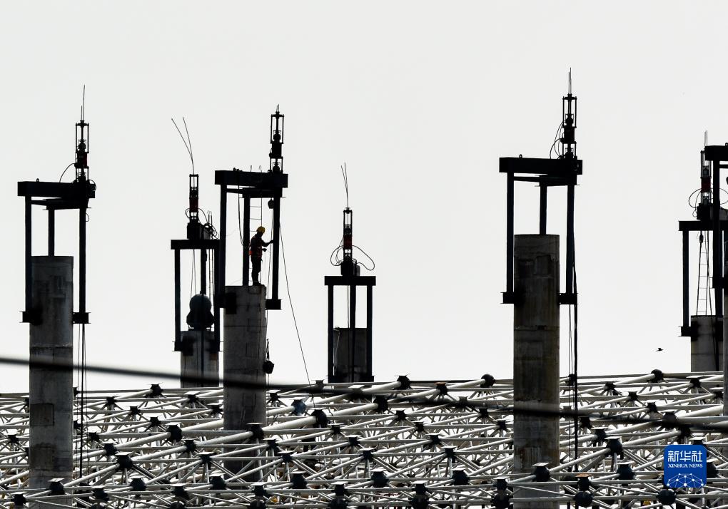 9月27日,建设者在广州白云国际机场T3航站楼西北指廊进行屋顶钢结构安装施工。