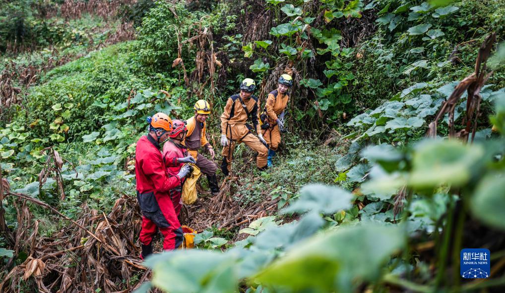 意大利专家和贵州省山地资源研究所科考队员在前往探洞的途中(9月24日摄)。