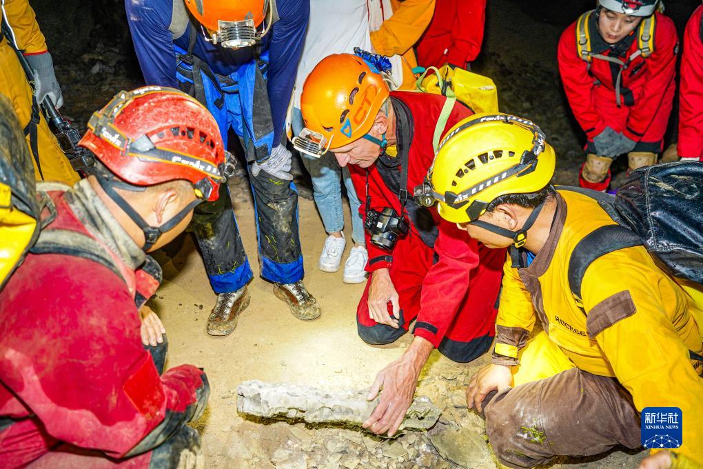意大利专家和贵州省山地资源研究所科考队员在双河洞一处支洞中进行科考(9月22日摄)。