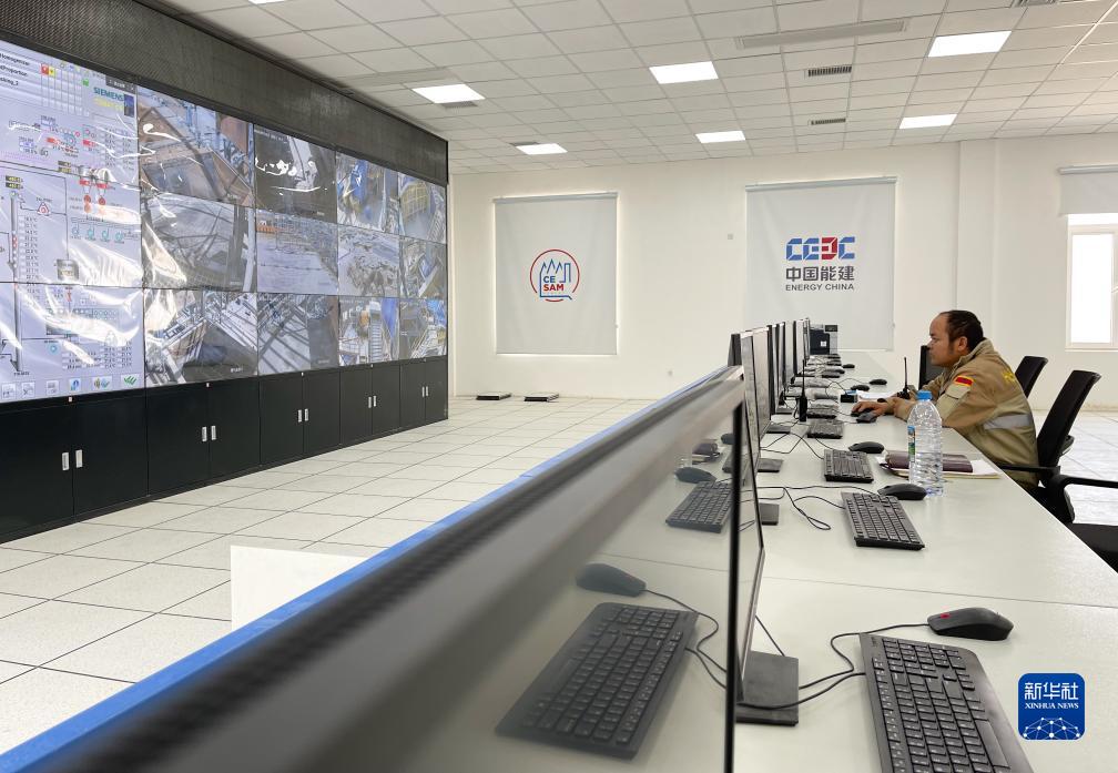 这是9月16日在乌兹别克斯坦撒马尔罕州拍摄的水泥生产线项目中控室。